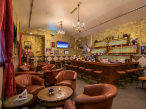 Flying Elephant, tucked inside Novotel Al Barsha, is a true speakeasy with vintage décor, velvet chairs, and creative cocktails infused with Indian flair. Whether you’re enjoying jazz nights, brunch, or happy hours, this spot creates the perfect mood for quiet conversations and unique experiences.